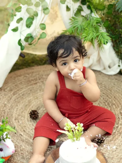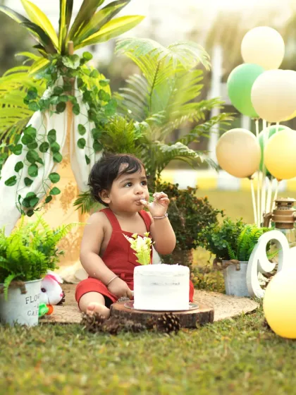 I specialize in creating playful and festive cake smash photo sessions to celebrate your little one's first birthday milestone. Each session features vibrant themed setups with custom decorations, props, and a specially designed cake for your child to explore and enjoy.