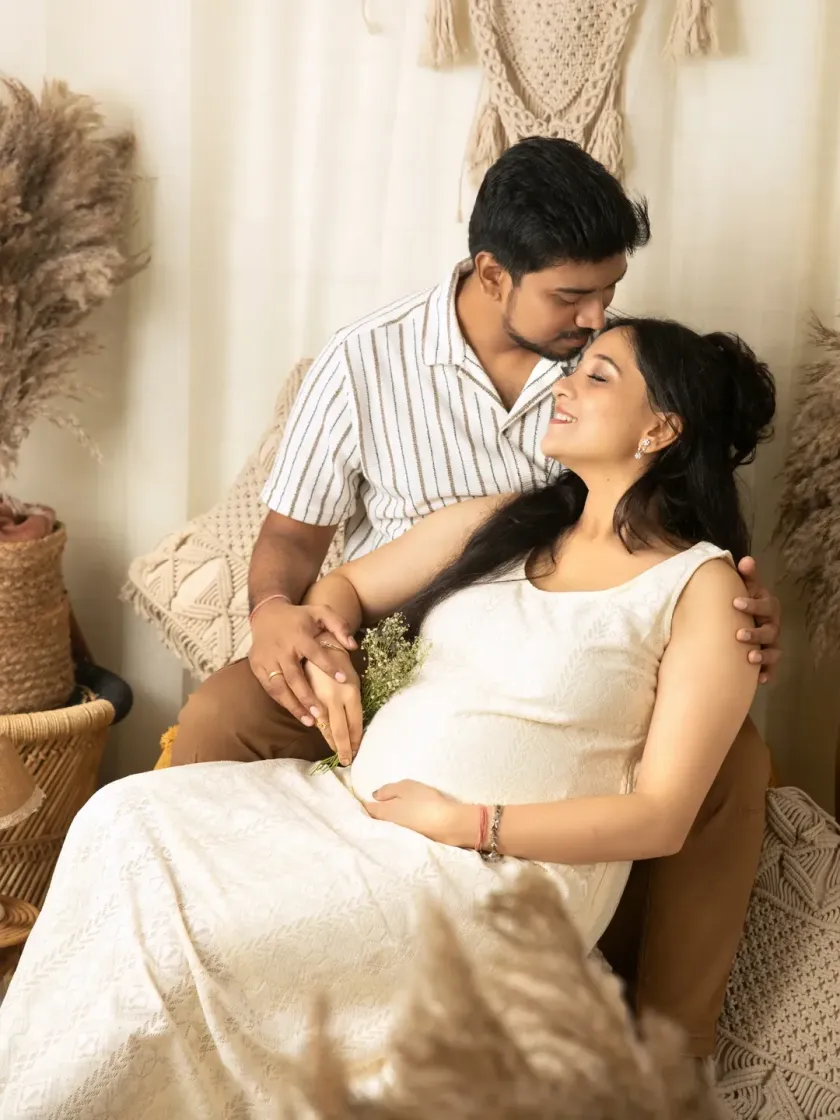 I create a comfortable and beautiful space for you to celebrate your journey to motherhood. My studio offers a variety of themes, including our popular rustic boho setup, elegant traditional shoots with sarees, and glamorous gown portraits for a touch of drama.