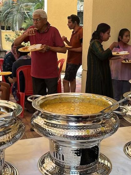 I bring the full party experience to your home with my classic buffet setup. This service includes everything from the steel and silver serving handis to my professional team in uniform, ensuring your guests are served hot, fresh food without any hassle for you.