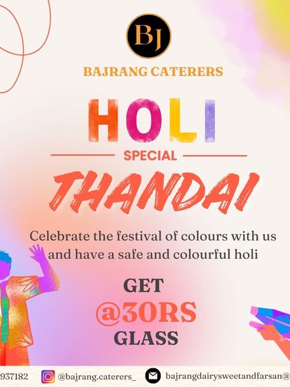 - For Holi, my thandai is a hit - people wait for it every year. I also do colourful trays of Holi sweets and full meals for your Holi party catering.