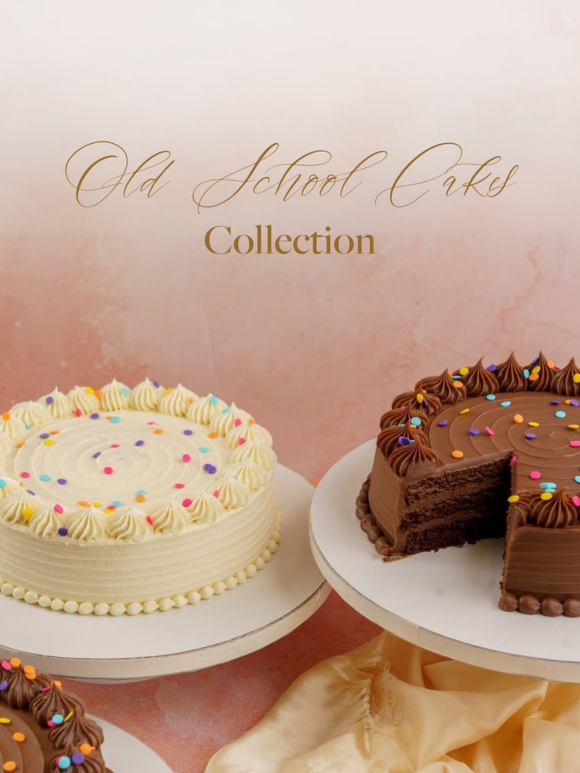 A trip down memory lane with my Old School Cakes Collection. These cakes bring back the simple joy of childhood birthdays with classic buttercream, moist sponge, and a generous shower of rainbow confetti.