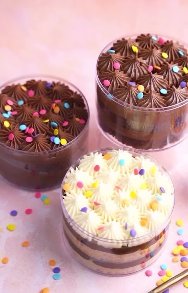 Your personal pot of happiness. This collection features my bestselling cakes and mousses in convenient, single-serving tubs. Find everything from nostalgic birthday cake tubs to decadent chocolate mousse cups, all 100% egg-free.