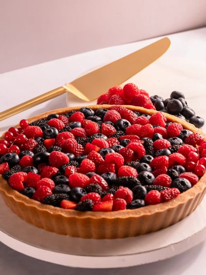 We create artisanal tarts featuring premium ingredients and elegant designs. Our signature offerings include Chocolate & Berries Tart adorned with fresh berries, seasonal Mango and Berry Tart with Alphonso mangoes, and classic Strawberry Tart with buttery crust.