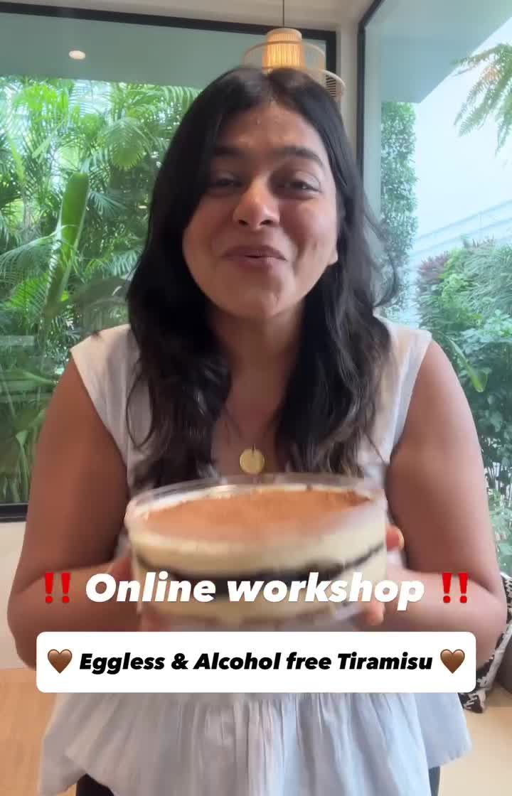 Join my workshops from anywhere in the world! I host live online classes where I teach you how to make my best-selling treats, including my eggless and alcohol-free Tiramisu, the viral Eggless Butter Cake, and a full menu of cafe-style coffees. You get lifetime access to the recording and a support group for all your questions.