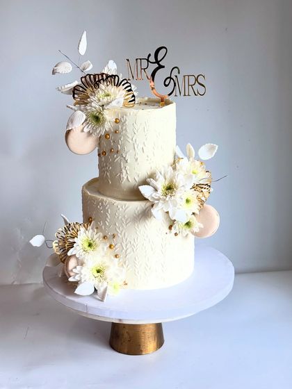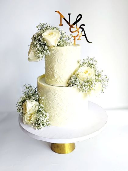 Couples seeking elegant, personalized cakes for their special day who value aesthetic appeal and premium quality. Especially suited for those who prefer non-fondant cakes but want the same luxurious look.