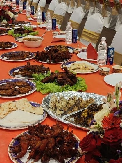 Menu & Event Catering - We do all kinds of events: weddings, nikah, valima, corporate parties, dawaats. Chicken biryani catering, kebabs, live dosa counter, desserts, you name it.
