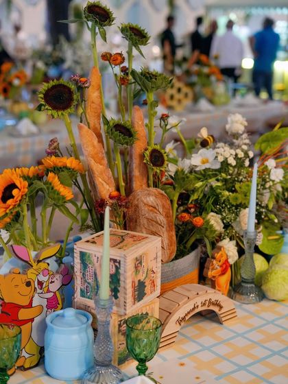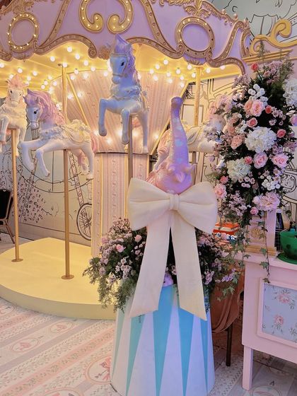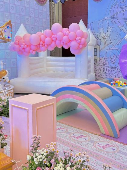 I go all out with details - not just giant props, but custom flooring, themed wallpapers, and balloon ceilings that make you look up and say “wow.” I add personalised touches like monogrammed plates, signage, and themed cushions. I throw in interactive party experiences for kids, like nail art stations, ring toss booths, and soft play zones that actually fit the theme instead of just sitting in the corner.