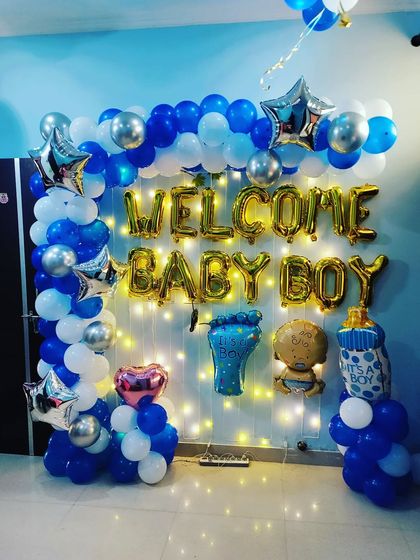 I create warm and joyful decorations to welcome your newborn home. My services range from simple balloon bunches and entrance pillars to full room setups with custom backdrops, foil balloons, and flower petal pathways.
