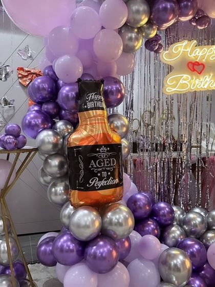 I create stylish decorations for milestone birthdays like the 18th, 21st, or 40th, and for any anniversary. I use props like marquee light numbers, neon signs, and classy color combinations to make your party look great.
