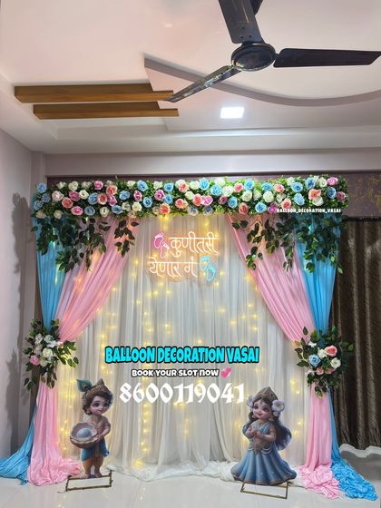 I create beautiful backdrops for all types of baby showers, from traditional Dohale Jevan ceremonies to modern parties. Whether you prefer a classic pink and blue theme, a vibrant rainbow look, or something completely unique, I can design a setup that fits your home or hall perfectly.