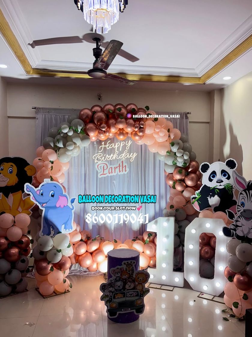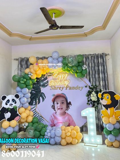 Go on a wild adventure with our popular jungle and animal themes. We create immersive setups with balloon garlands in earthy tones, lush greenery, and friendly animal cutouts like lions, pandas, giraffes, and elephants.