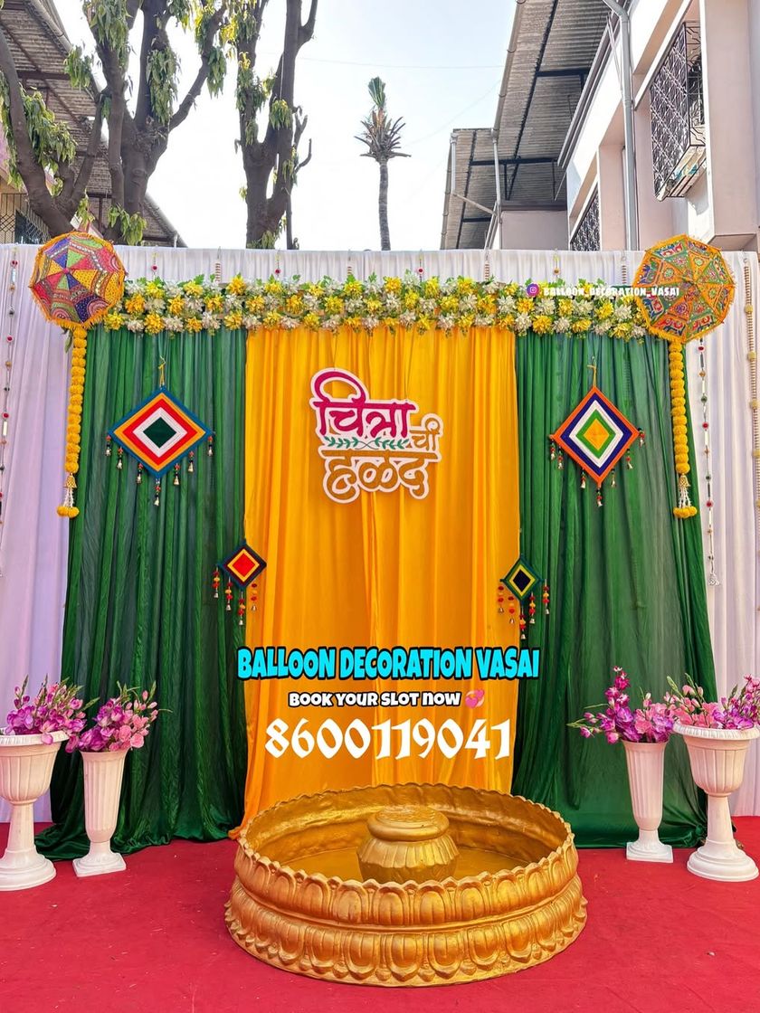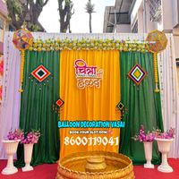 We bring energy to your Haldi and Mehndi functions with traditional and colorful decor. Our setups often feature bright yellow and green drapes, marigold flower arrangements, grass walls, and custom Marathi signage for an authentic touch.
