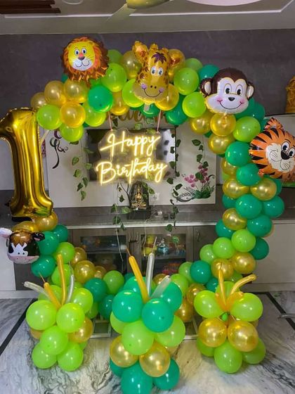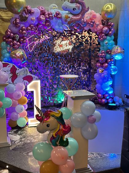 - Customized birthday party decorations, jaise arches, ceiling bunches, pillars, and even personalized name backdrops