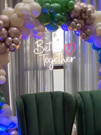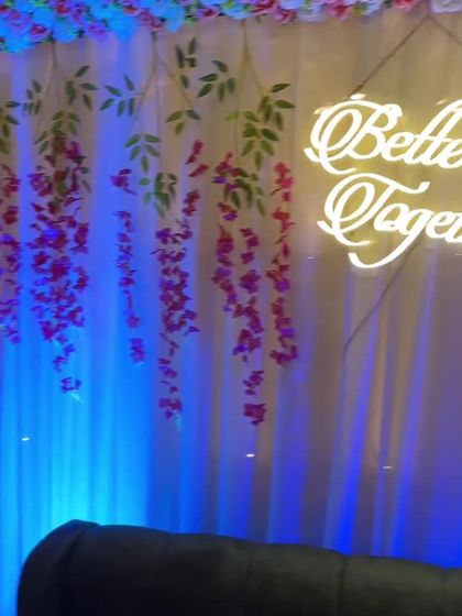 I design chic and modern backdrops for your special milestones like ring ceremonies and anniversaries. These setups often feature elegant elements like fabric drapes, floral arrangements, custom neon signs, and balloon arches to create a romantic and celebratory ambiance.