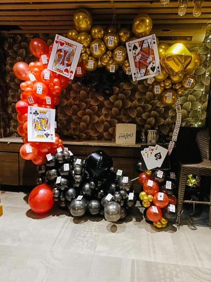 I specialize in creating fun, themed decorations for parties, especially for card parties during Diwali. My setups include creative balloon arrangements and custom props like oversized playing cards and casino-style standees to bring your theme to life.