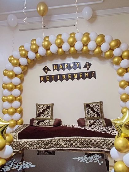 I handle decor for all types of internal company events, from retirement parties and office birthdays to major team achievements. Setups can range from classic arches to modern organic garlands with custom foil numbers to fit your specific occasion.