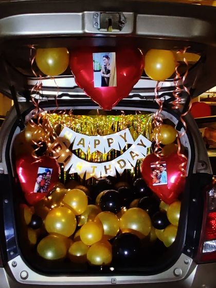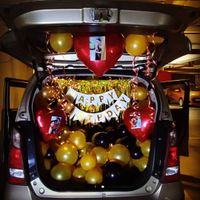 For a fun and unexpected celebration, I decorate car trunks with balloons, banners, and lights. Just open the trunk for an instant party, perfect for birthdays on the go.