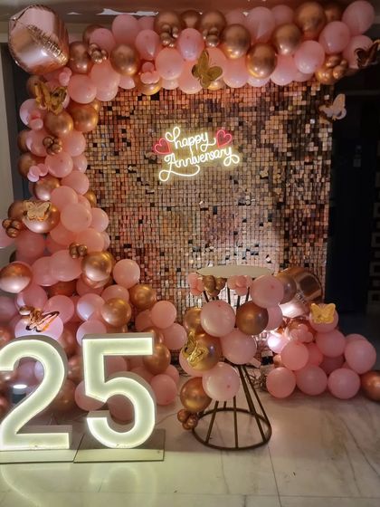 - From first to silver jubilee, we do simple or glamorous. Sequin shimmer walls, balloon garlands, and those huge light-up numbers (like "25") are regular requests.