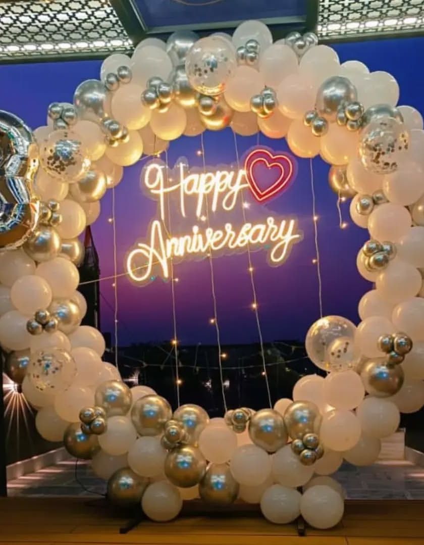 We take your celebration outdoors with our custom terrace and open-air decorations. We build magical spaces using fairy light canopies, elegant dinner settings, and balloon arrangements perfect for a romantic evening under the stars.