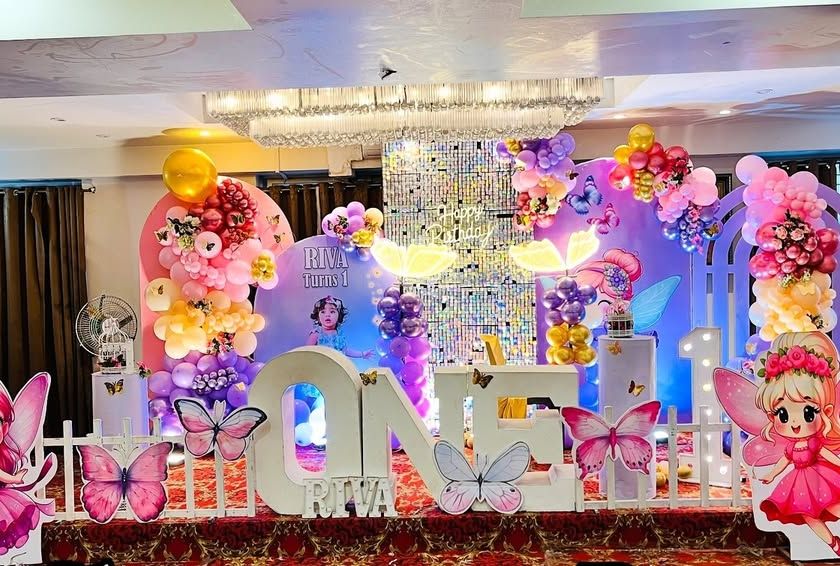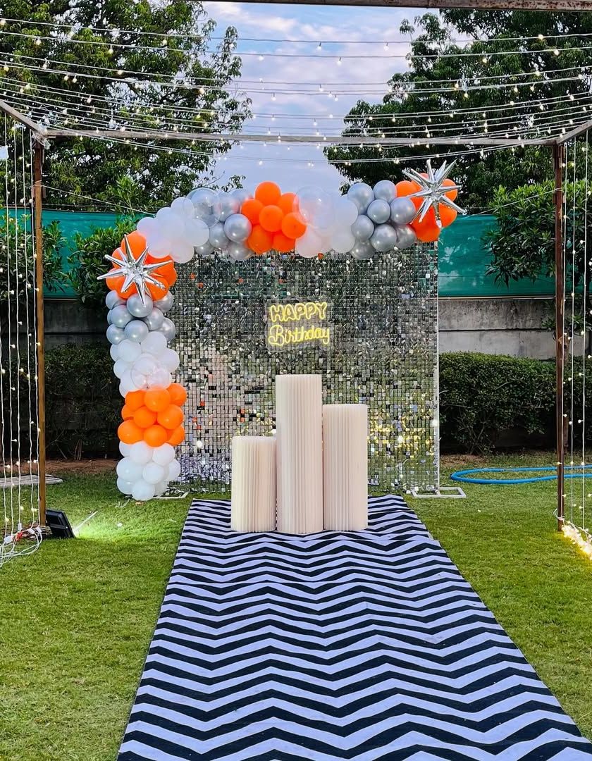 I can transform any outdoor space, like a garden, lawn, or terrace, into a beautiful party venue. I use elements like fairy light canopies, weather-resistant balloon arches, and themed backdrops to make your outdoor celebration special, day or night.