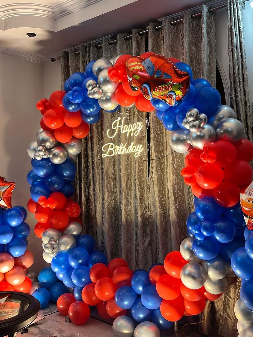 You don't need a huge venue for a beautiful party. I specialize in creating compact and impactful decorations for living rooms and smaller spaces, using balloon arches, simple backdrops, and ceiling decor to make your home feel festive.