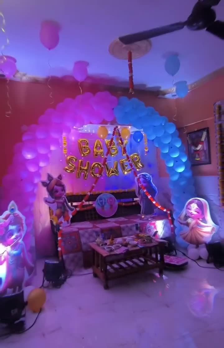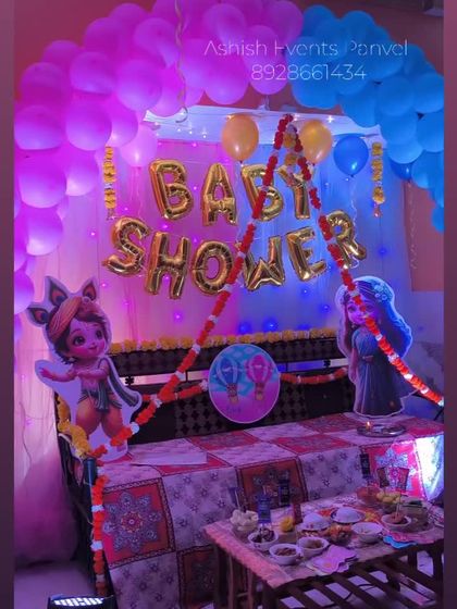I create setups for both modern baby showers and traditional Maharashtrian Dohale Jevan ceremonies. I can provide everything from balloon backdrops and neon signs to culturally specific props like 'मी आई होणार' placards for a complete celebration.