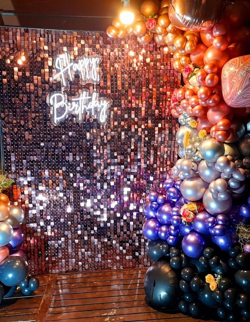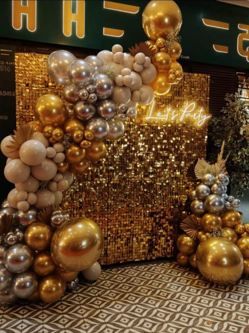 We create the ultimate 'WOW' factor with our glamorous backdrops, perfect for birthdays, anniversaries, and corporate events. These setups feature elements like shimmering sequin walls, chrome and metallic balloons, and custom neon signs to ensure your event is picture-perfect.