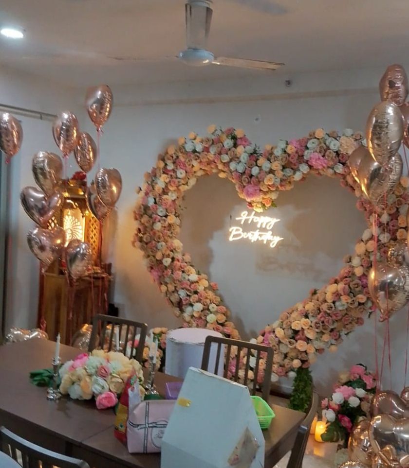 We help you celebrate love with our elegant and romantic decoration services. Our specialty is creating stunning heart-shaped backdrops using artificial florals and balloons, complete with neon signs and mood lighting, perfect for anniversaries, proposals, or a romantic birthday surprise.