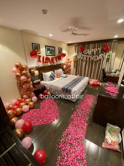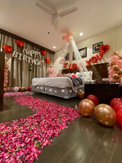 We set up romantic rooms with custom balloon decor, lights, and personal touches in Delhi, Mumbai, and Hyderabad for any occasion.