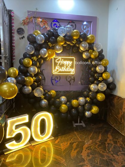 We design sophisticated decor for milestone birthdays, anniversaries, and elegant parties. Our setups often feature stunning balloon arches, marquee light-up numbers, and stylish color palettes like gold, silver, black, and pastels.