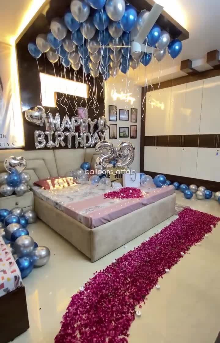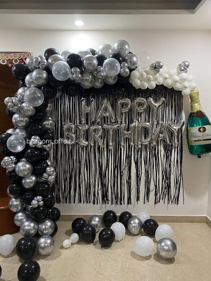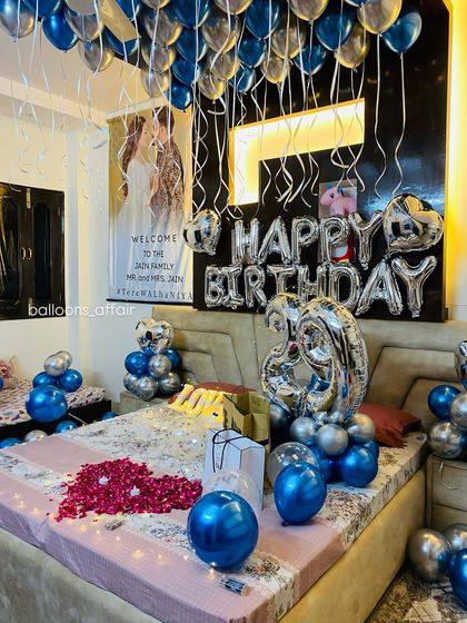 I transform any room into a birthday wonderland, whether it's at home or in a hotel. These packages are designed for maximum impact, featuring ceiling and floor balloons, foil letters, and personalized elements like hanging photos to make the day unforgettable. You can choose from a variety of color combinations, including bold black and gold, classic blue and silver, or romantic rose gold.