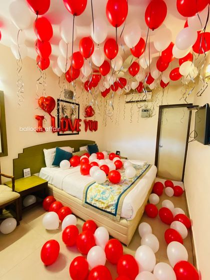 I create the perfect setting for your love story, specializing in first night decorations, anniversary surprises, and proposals. These setups often include dreamy canopies with fairy lights, "Just Married" or "I Love You" foil balloons, and beautiful rose petal arrangements. I offer a range of color themes from classic red and white to modern black and gold to match your style.