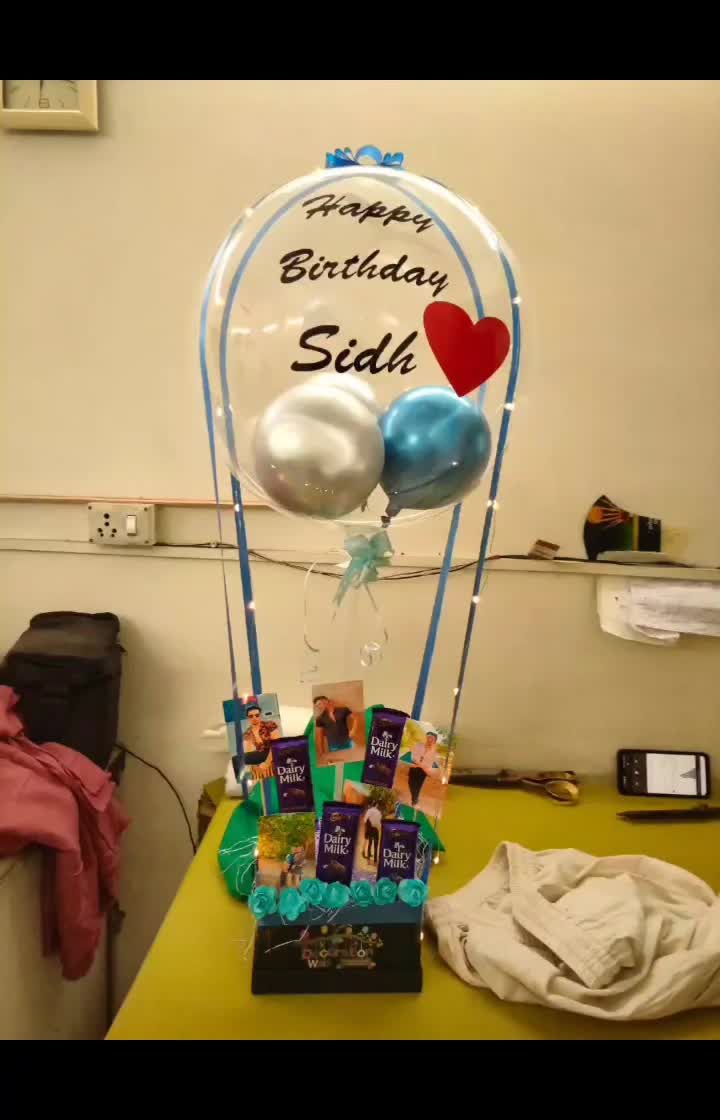 Want to add an extra touch? I design personalized gift hampers and bouquets to go with your decoration. These can include hot-air balloon style bouquets filled with chocolates, flowers, and even your personal photos to make the surprise complete.