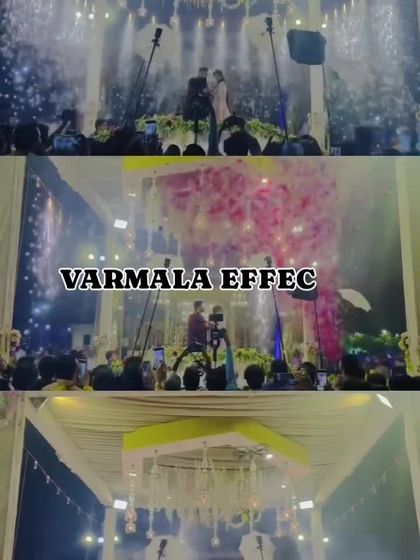 Main events need that “wow” moment. I do custom wedding hashtag backdrops, sequin walls, neon signs, and for the varmala, cold pyro sparklers and flower showers - proper filmy style.