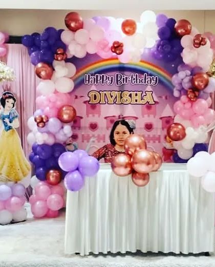 We handle birthday decorations for any age and theme, from small room setups to big stage events, and take care of everything from balloons to custom backdrops so you don’t have to worry about the details.