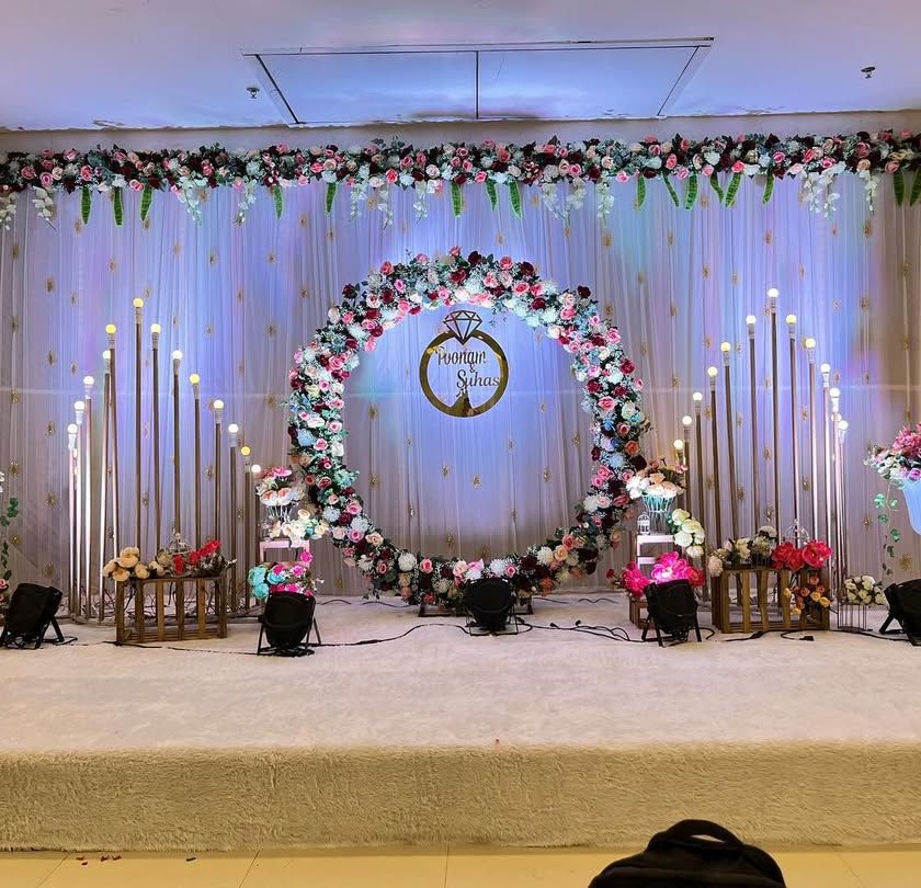 I create beautiful backdrops for your special day, from grand floral rings to modern geometric frames. Whether you want a classic look with drapes and flowers or a chic setup with custom monograms, I can design the perfect stage for your engagement, sangeet, or reception.