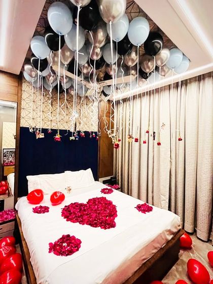I create that special 'just married' feeling with beautiful room decorations for your first night, anniversary, or a romantic surprise. I use everything from balloons and rose petals to fairy light canopies to make the moment unforgettable.