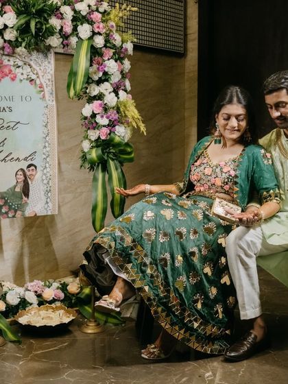 - For pre-wedding home rituals, I go bold and colorful. Mehendi setups get all the genda (marigold) flowers, printed backdrops, and cheeky signs - total photo vibe.