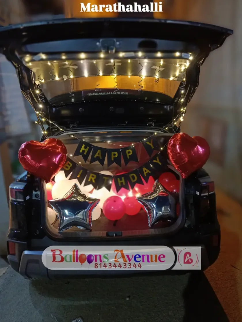 Our surprise car boot decoration is one of our most unique services, perfect for proposals, birthdays, or anniversaries on the go. We transform the trunk of your car into a personal celebration space with balloons, banners, and fairy lights for a surprise they will never forget.