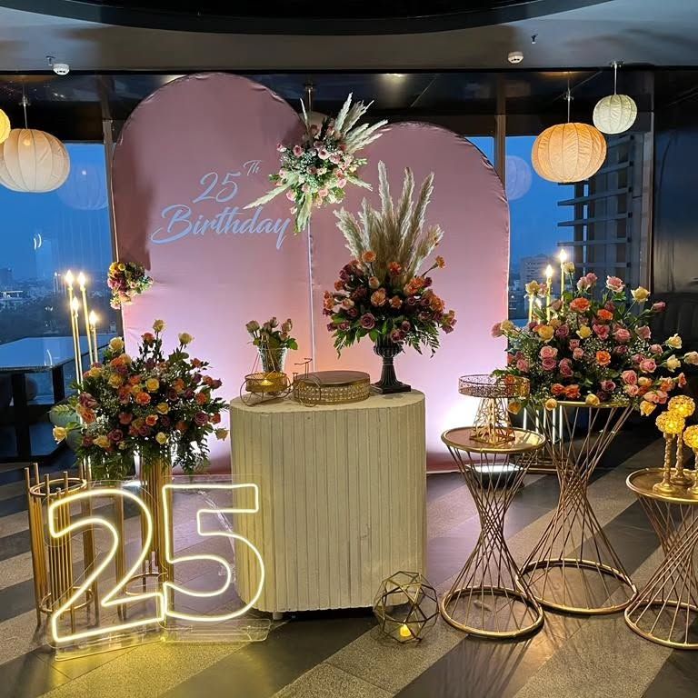 I create sophisticated and stylish decorations for all of life's big moments, from sweet 16s and 21st birthdays to golden 50th anniversaries. My designs include elegant floral arrangements, glamorous shimmer backdrops, and custom lighting to make your milestone celebration truly special.