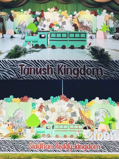 No copy-paste decorations here. Whether you come with Pinterest boards or just a random idea, I listen and then design something that feels personal. From whimsical kids party setup like jungle safaris or superhero cities, to elegant milestone event styling for anniversaries and big birthdays, I can do both wild and classy.
