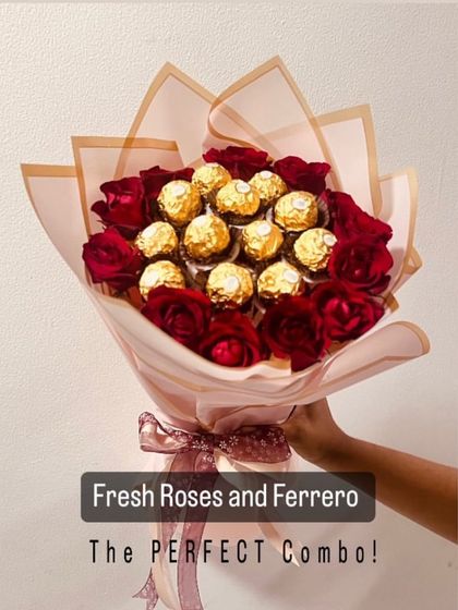 - Flowers & chocolates come in fresh, fancy boxes, often mixed with Ferrero Rocher, macarons, or personalized balloons. Not your usual bouquet.