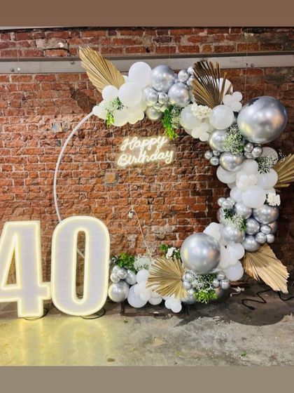 I design sophisticated and stylish decor for adult birthdays, anniversaries, and other major life milestones. Whether you want a chic and minimal look or a glamorous party theme, I use custom backdrops, elegant balloon arrangements, and marquee numbers to make your celebration stand out.