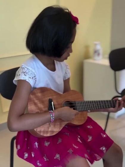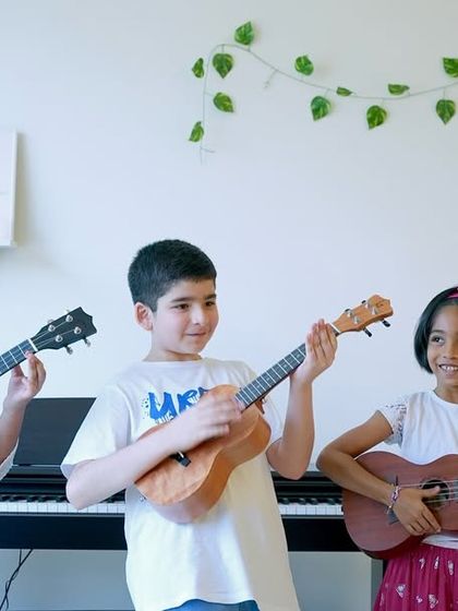The ukulele is our top recommendation for a child's first instrument. Its small size is perfect for little hands, and our curriculum is designed to have kids playing a song in their very first lesson, sparking immediate joy and confidence. We cover everything from basic chords to popular English and Bollywood songs.