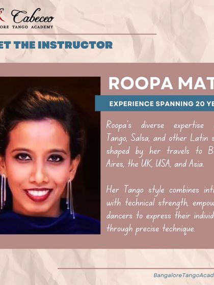We’re Tango Academy, not your typical dance school. Started by Roopa Math, who ditched engineering for dance, we’re all about the real heart of Tango. Roopa trained in Buenos Aires, got hooked at her first Milonga, and now she’s back to build a Tango community here. Our classes aren’t about perfection – it’s about feeling the music, connecting, and finding your own groove. Come as you are, no fancy shoes needed.