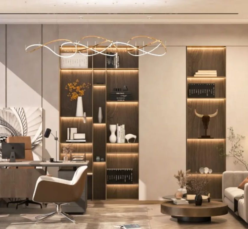 We design private offices and C-suite cabins that project authority and facilitate focused work. Our approach balances impressive aesthetics with practical needs like integrated storage, ergonomic furniture, and sophisticated lighting for a commanding yet comfortable workspace.