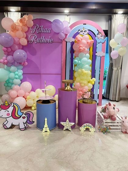 We set up custom birthday decorations for kids and adults at your location in Bengaluru, covering any theme, milestone setups, and all decor details from balloons to backdrops.