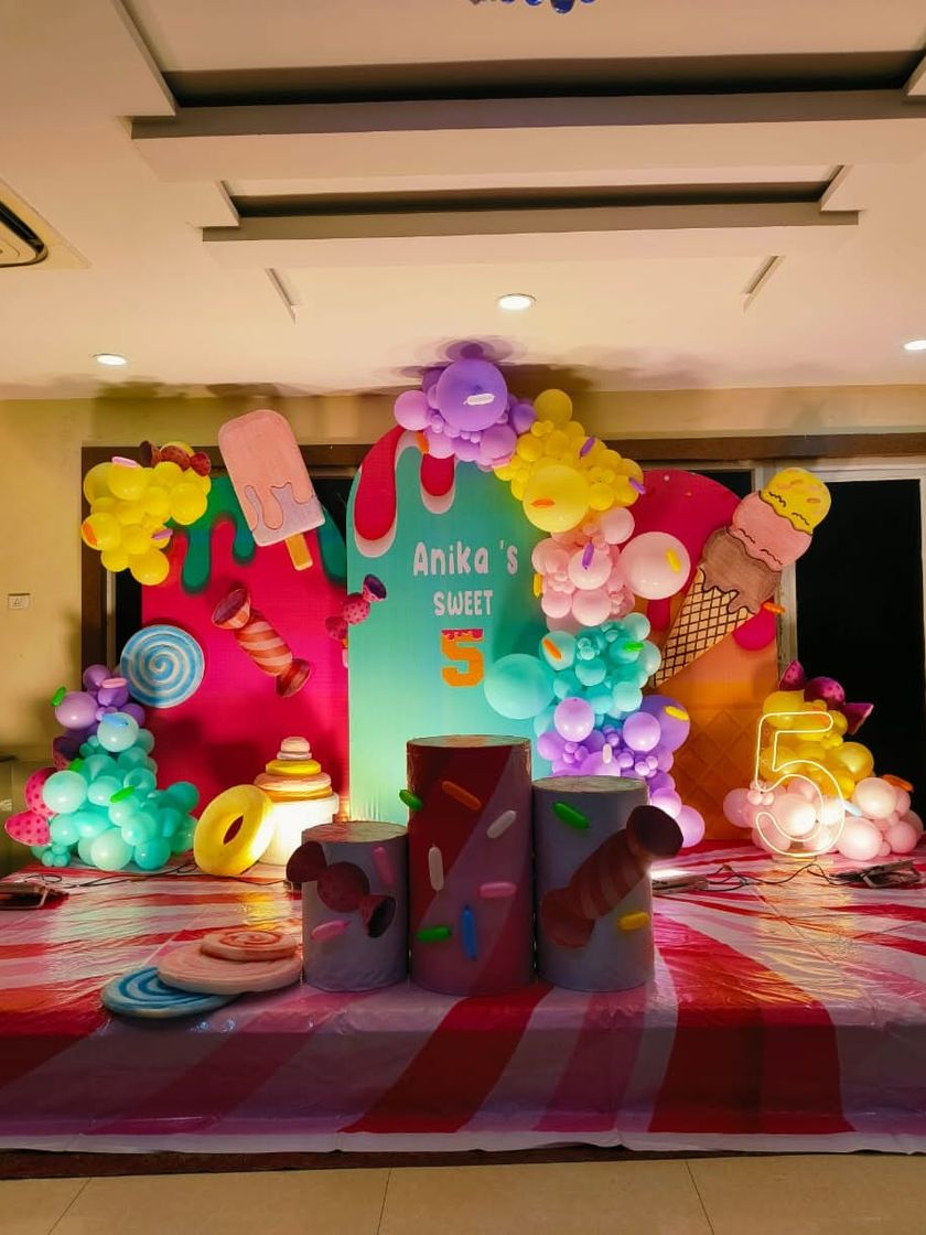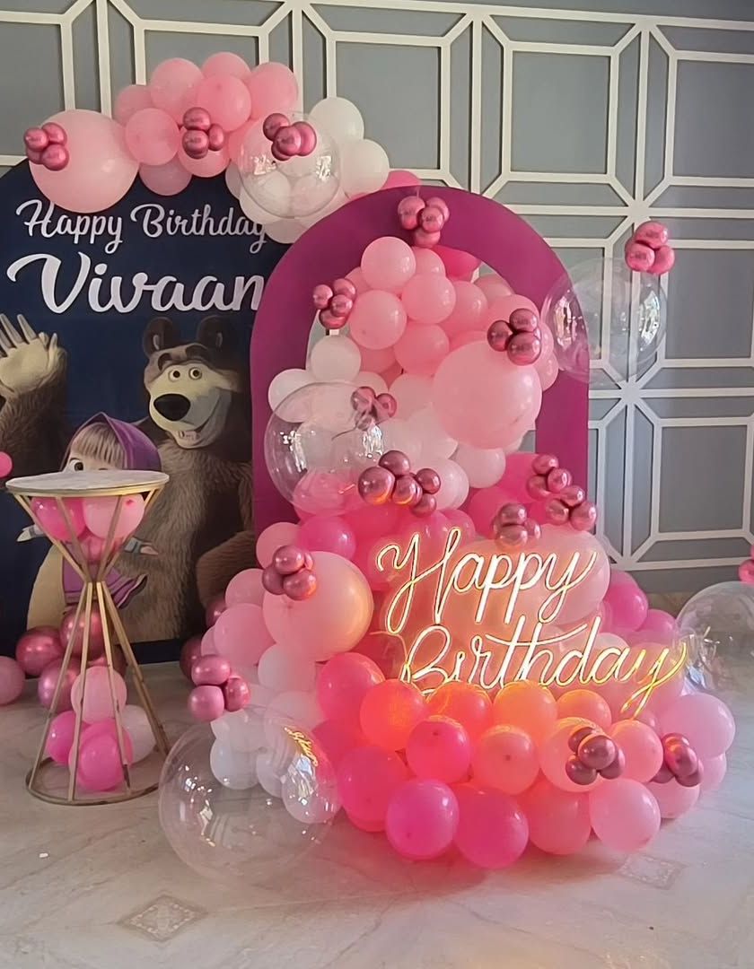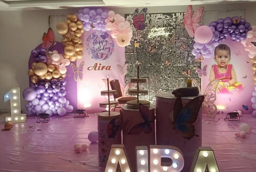 I design magical party atmospheres with themes like Butterfly, Mermaid, Fairy, and Princess. Setups include custom backdrops, themed props, and color-coordinated balloon garlands to create an enchanting experience.