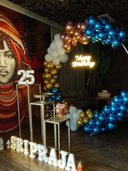 I lean into modern, magical, and a bit of fairyland vibes. Balloon arches, lots of twinkly lights, cozy teepee tents, and personal touches like photo displays or custom signs. You pick the spot, I’ll turn it into something special - home, hotel, cafe, terrace, anywhere in nammabengaluru (our Bengaluru). I handle the setup, so you just show up and enjoy.