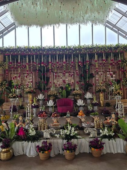 - Ceiling: Jasmine (Malli) strings and Tuberose garlands for the canopy.
